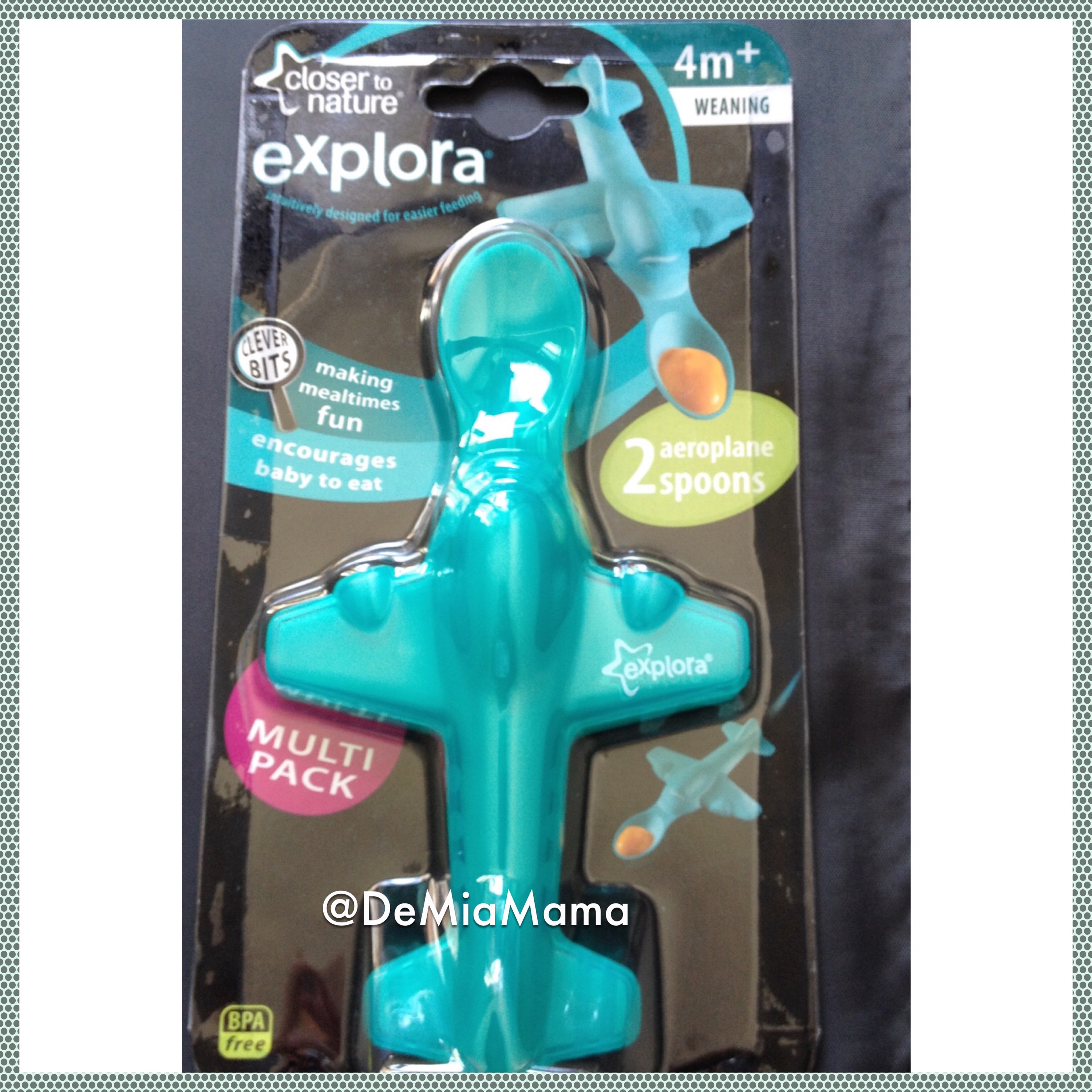 Un día vi en una tienda unas monísimas de Tommee Tippee de avióncitos, no me pude resistir, en el pack venían dos y no podían ser mas monas, el «problema» que el heredero se lo suele zampar todo sin poner mucha objeción, así que no las hemos llegado a usar, porque son más incómodas de coger (Se convirtieron en otro precioso cachivache que guardar)