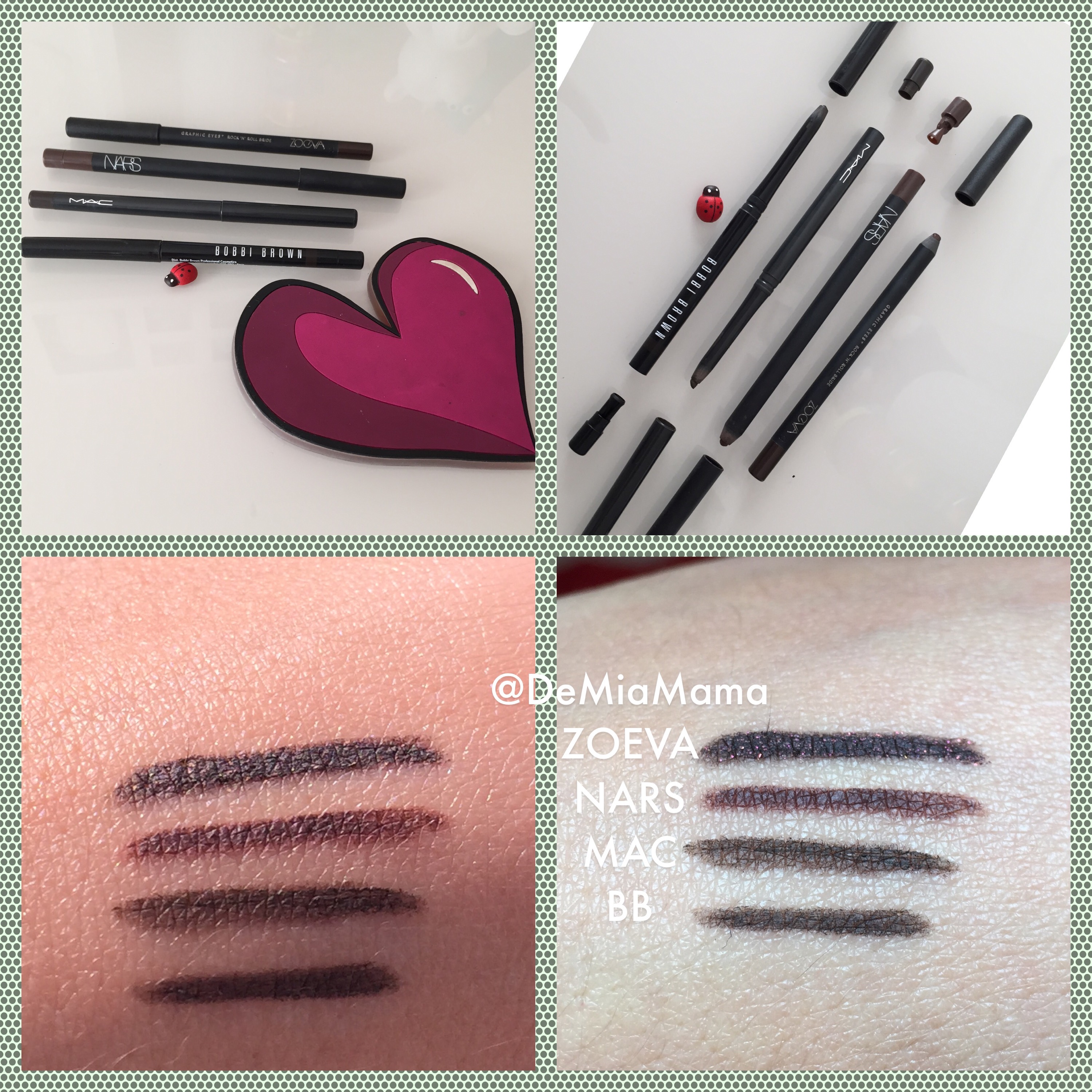 El de ZOEVA, no lo uso a diario por el tema del  shimmer. Y lo que menos me gusta de él que sea un lápiz de formato tradicional, vamos de los que hay que sacaron ta, mientras que los otros son todos de los que llaman automáticos, (los que girando una parte del lápiz va saliendo la mina)