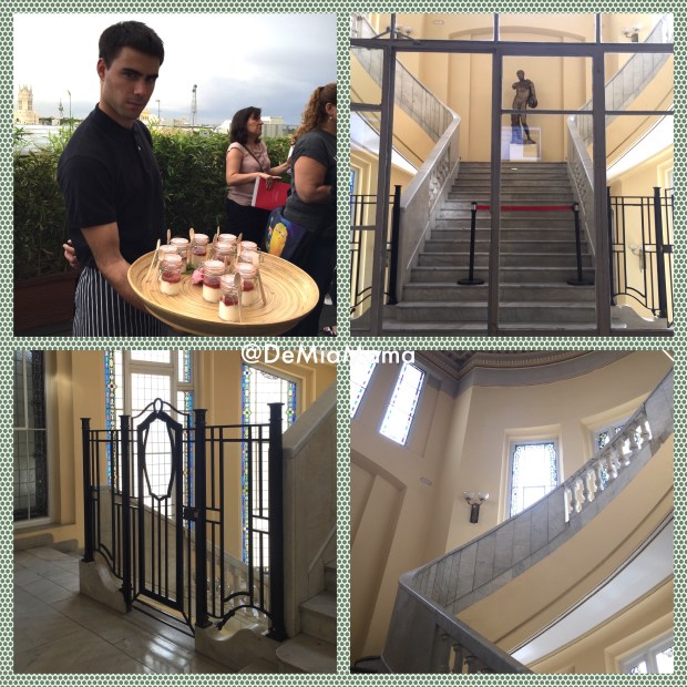Después de la presentación hubo un coctel con un catering cuqui cuqui, original, bien presentado y rico (porque hay algunos que al ojo sientan muy bien pero cuando los pruebas piensas que mejor no haberlo hecho, eso acompañado del edificio, dió un resultado de 10, os dejo algunas fotos para que lo veáis, la única pena es que el tiempo no acompañó mucho, pero respetó el rato q estuvimos en la terraza.